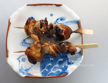 焼く 下ゆでしたものをタレをつけながら焼いてもいい。少々硬いが噛めば噛むほど味が出てくる。