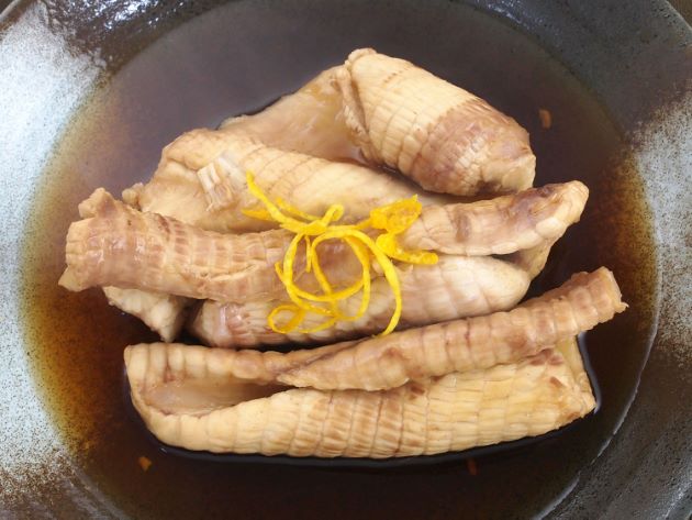 水や空気を吸い込み、ため、体をふくらませる習性があるとされるが、料理をするときにも海水が出てくる。