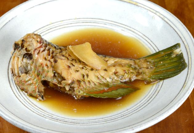 ハゲブダイの煮つけ 水洗いして湯通しする。冷水に落として残った鱗やぬめりを流す。これを酒・砂糖・醤油・水を煮立たせた中に入れて煮る。砂糖など甘味は加えなくてもいい。煮ても軟らかく、身離れがいい。皮や身にうま味がありとても味わい深い。