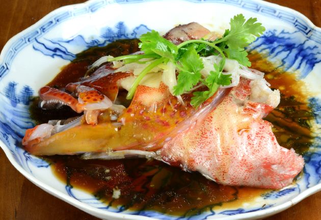 バラハタの蒸し魚(清蒸) 熱帯域でもっとも基本となる料理方が蒸す、である。熱帯のハタの漁獲圧が高いのはこの料理のためだという人もいる。頭部の鱗は徹底的に取る。梨子割りにして水分をよくきる。これを10〜15分蒸して中国醤油もしくはタレ(醤油・紹興酒・ナンプラー、砂糖、八角を一煮立ち)をかけ、香りのあるねぎ、香菜などを乗せて熱した油をかける。皮、身ともとろっとして柔らかく、身にほどよい甘味とうま味がある。ご飯に合う。