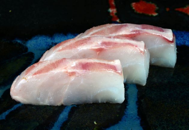 透明感のある白身だが、時間が経つと少し白濁する。束状の筋繊維はなくスポンジ状で脂などは混在して熱を通すと液化する。血合いはやや強い。熱を通しても硬く締まらない。栄養