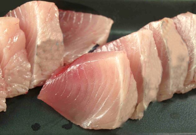 黄色みを帯びた赤身で血合いはやや大きい。熱を通すとやや硬く締まる。