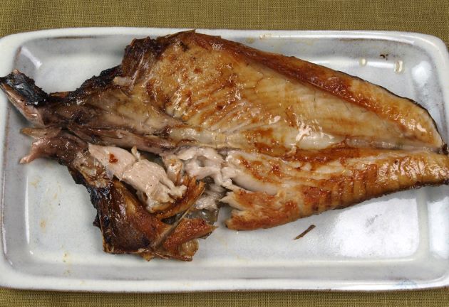ビンナガマグロの腹も干し 大型の腹もは産地では干ものにもなり、また生でも売っていたりする。比較的脂が乗っている部分なので焼いても硬く締まることがない。腹もに振り塩をする。1時間以上寝かせて、表面に出て来た水分をきり、じっくり焼き上げる。クリックで閉じます![]()