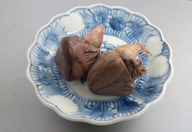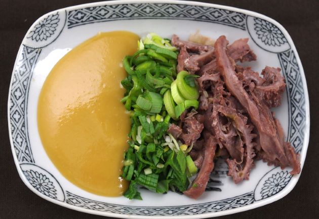 ビンナガマグロの胃袋湯引き 三陸、紀伊半島などの産地などに行くと売っているのが胃袋など内臓。これを産地では湯引きにして辛子酢味噌で食べる。意外にうま味が強く、歯ごたえもいい。部分部分での味の違いがあって楽しい。クリックで閉じます![]()