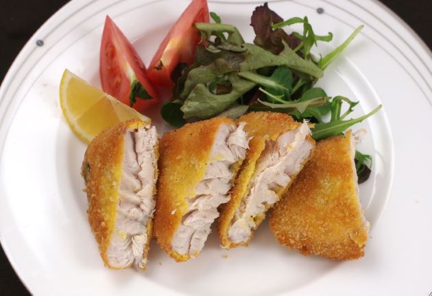ビンナガマグロのカツレツ 比較的脂ののったビンナガマグロをフライにすると実にうまいが、普通のものをフライにすると硬く締まっておいしくない。ここではバターでじっくり焼き上げる。切り身にして塩コショウして、小麦粉をつけ、溶き卵にからめパン粉をつけて、多めのバターもしくはマーガリンでソテーする。クリックで閉じます![]()