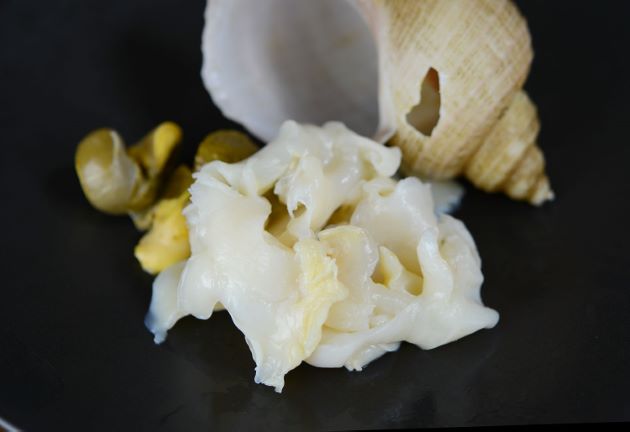 貝殻はエゾボラ属の中では薄くもろい。軟体には模様がなく、色が淡い。栄養