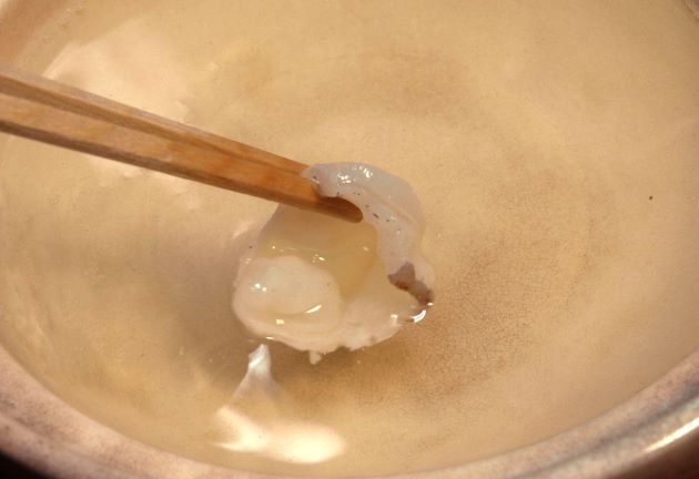 ミズダコのしゃぶしゃぶ 腕は冷凍庫で半分凍らせる。これをできるだけ薄くスライス。昆布だしのなかで自分の好みの火の通し加減で食べる。ほとんど生で食べるのと、しっかり火を通すのとで味は大いに違う。その違いを楽しむ。クリックで閉じます![]()
