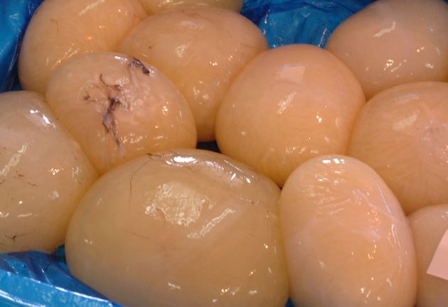 また軟体部分以外にも卵巣、白子、鰓、烏トンビ(口)などが流通している。