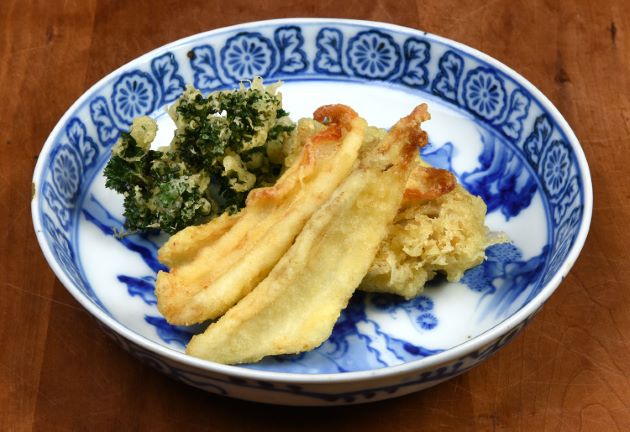 ムシガレイの天ぷら 五枚下ろしにして水分をよくペーパータオルなどに挟んでとる。軽く振り塩をして小麦粉をまぶし、衣をつけて高温で揚げる。無駄な水分が抜け、うま味が増す。さくっとした食感も心地よくとても味わい深い。クリックで閉じます![]()