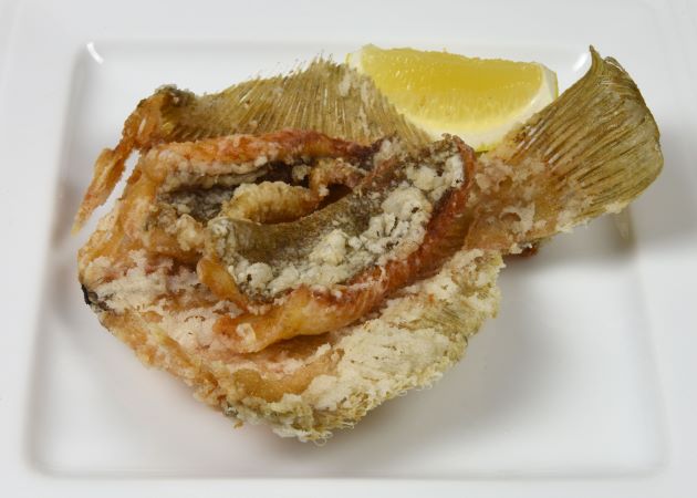 メガレイの唐揚げ 中骨と5枚に下ろした身の一部を使って揚げてみた。骨はあまり硬くはなくじっくり二度揚げすることでさくさくと丸ごと食べることができる。筋肉が繊維質ではないので意外に「揚げる」がいちばん向いているのかも。