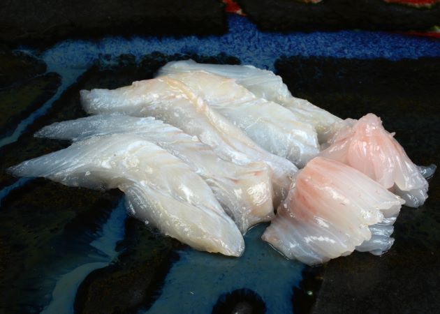 透明感のある白身で白濁しやすく、あまり繊維質ではない。熱を通しても硬くしまらない。栄養