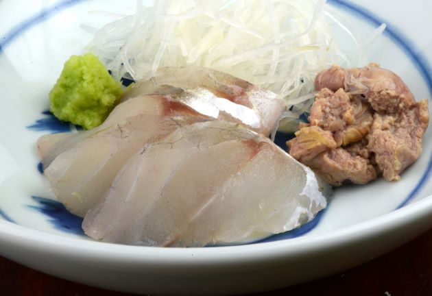 ヨシノゴチの刺身 活を活け締めにし、送ってもらったものを刺身にしてみた。三枚に下ろして腹骨・血合い骨を取る。血合い骨は抜きにくい。やや薄めに切りつける。マゴチと比べると味が落ちるとされているが、春が旬で、マゴチの盛漁期である晩春や初夏に同時にとれると、その時、本種の味が落ちているためかも知れない。3月の固体は身に張りがあり、うま味も豊かであった。肝も絶品なので生のままでも、湯通ししてもいいので添えるといい。
