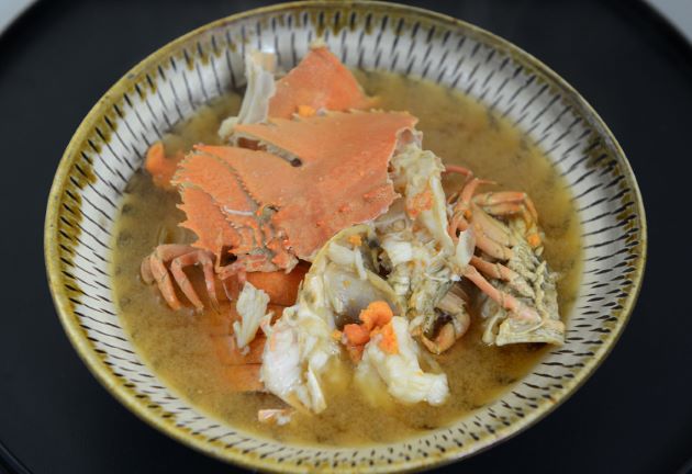 オオバウチワエビのみそ汁 原則的に生きているものを使う。買い求めてきたら軽く流水で洗う。これを適当に切り、水から煮出してみそをとくだけ。できるだけ余計なことはやらないほうがいい。エビの直な香りが苦手な人は酒を入れてもいい。実に濃厚でうま味豊かな汁になる。刺身などにした殻などだけでも十分うま味のある汁になる。