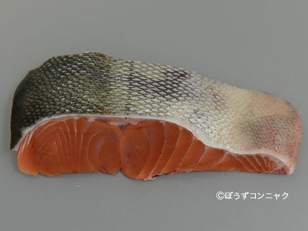 フィレ サケを三枚おろしにしたもの。鱗はついている。秋から初冬にかけて関東には大量に入荷してくる。