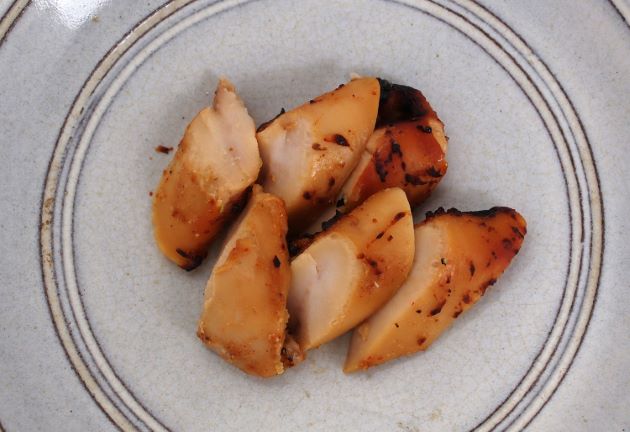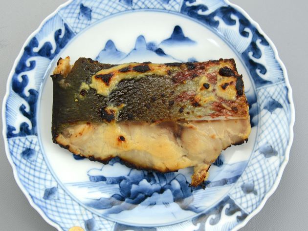 サケ白子のみそ漬け ここでは白みそと赤みそを合わせたもの、みりん、酒、砂糖を合わせて漬け地にした。白子は水でさっと洗い、水分をよくきり、合わせみそに漬け込む。1日以上漬け込んで焼き上げる。小粋な味わいになる。クリックで閉じます![]()