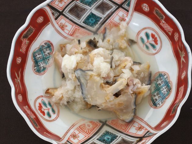 鱗は細かく皮膚に強く付着していて取りにくい。皮はとても硬く厚みがある。骨は軟らかい。