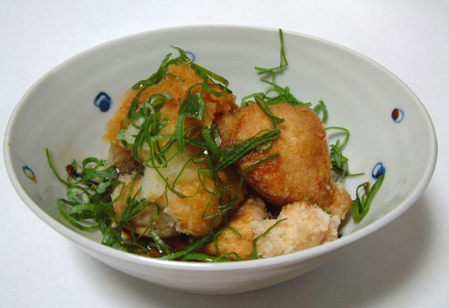 白子の揚げ出し 白子は水洗いして適当に切る。水分をよくきり、片栗粉をまぶして揚げる。タレはカツオ節出し7に対してみりん・酒・しょうゆを同量混ぜ合わせたもの3を合わせて一煮立ちさせたもの。割合は好みで、甘いのが好きなら砂糖を加えてもいい。揚げたばかりを器に入れてたれをかける。タレを入れた中に揚げたものを入れてもいい。大根おろしやねぎをのせて出来上がる。クリックで閉じます![]()